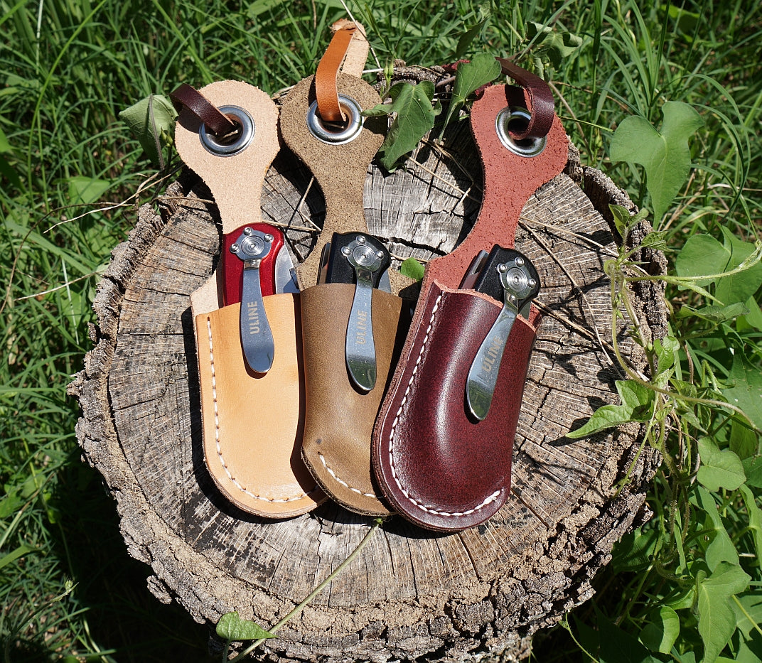 Feeding seems to usually include cutting string from hay or opening bags. There is no quicker way to dull a good knife than to cut hay string or paper. That is why Ezra Tech Ranch Gear created a way to keep a utility knife handy. We provide a folding utility knife in a leather sheath that you can hang almost anywhere. Keep it in your truck or in the tractor but always have a utility knife handy in lieu of dulling your good knife.