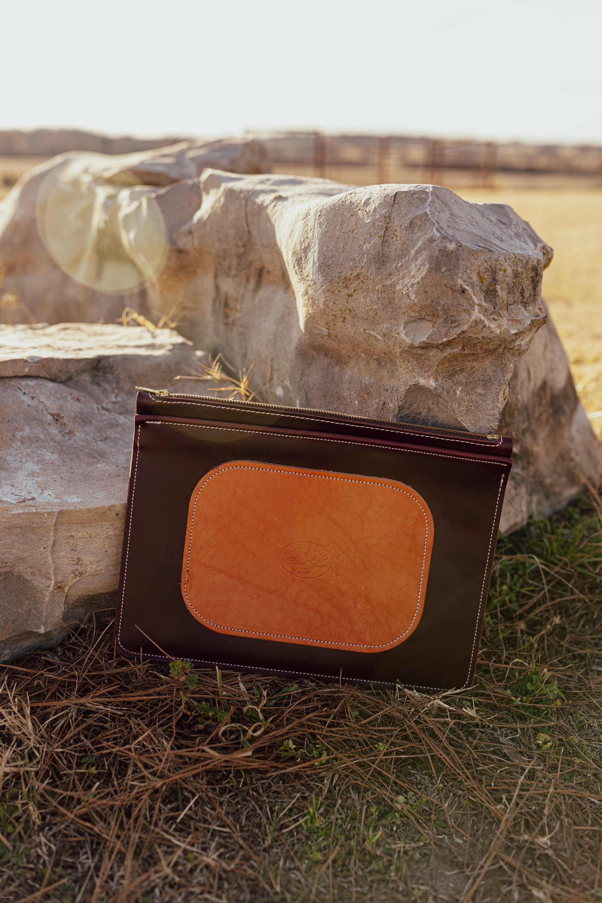 This iPad sleeve protects your iPad from the daily rough and tumble and is a wonderful way to look professional in the conference room or on the way to class. The iPad sleeve has one zipper pocket, which holds the iPad itself, and a separate outside pocket to keep notes and pens. There is an option to have your cover tooled and/or personalized to your liking.